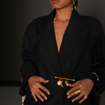 Todas las piezas son de brass con baño en oro de 24kt, acabado en oro mate, hechas a mano en Colombia.