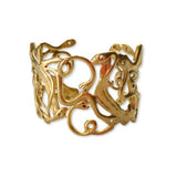 El diseño de este brazalete captura la esencia de la cultura QUIMBAYA, con formas fluidas que evocan la naturaleza y la fuerza ancestral de esta civilización. Su estructura intrincada refleja las espirales y formas orgánicas que son fundamentales en el arte de los pueblos indígenas.