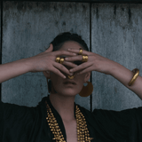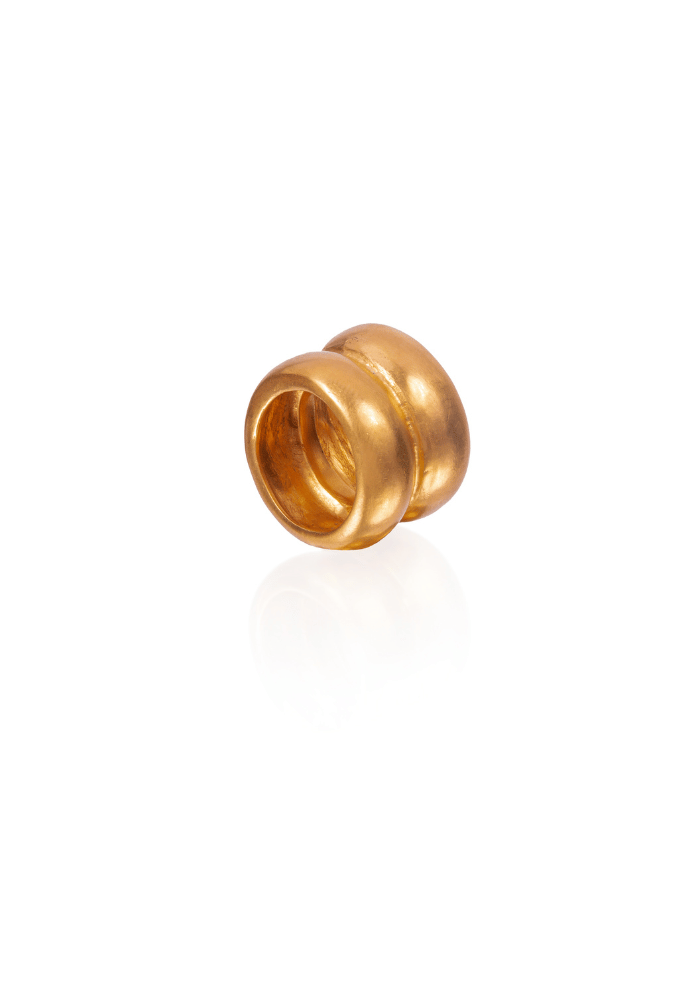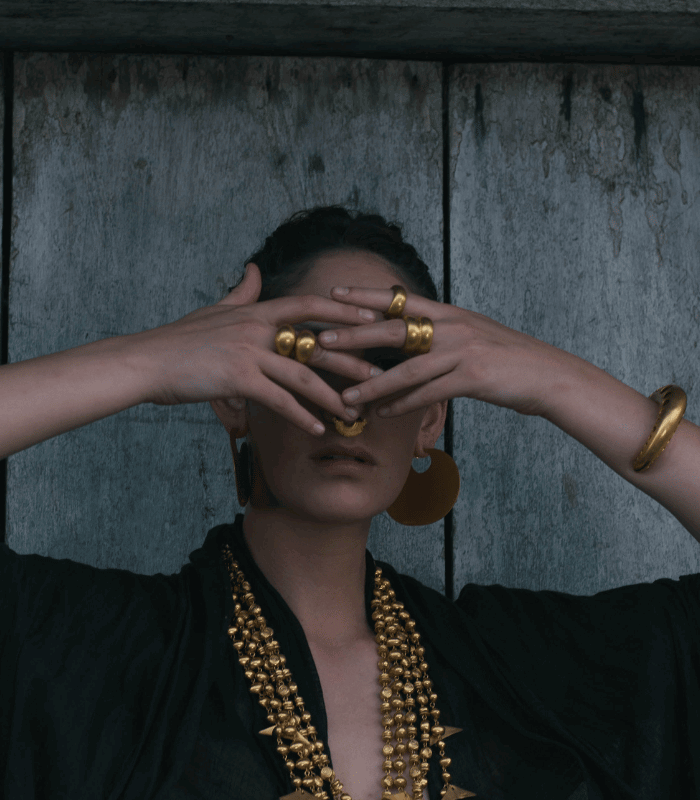 Todas las piezas son de brass con baño en oro de 24kt, acabado en oro mate, hechas a mano en Colombia.