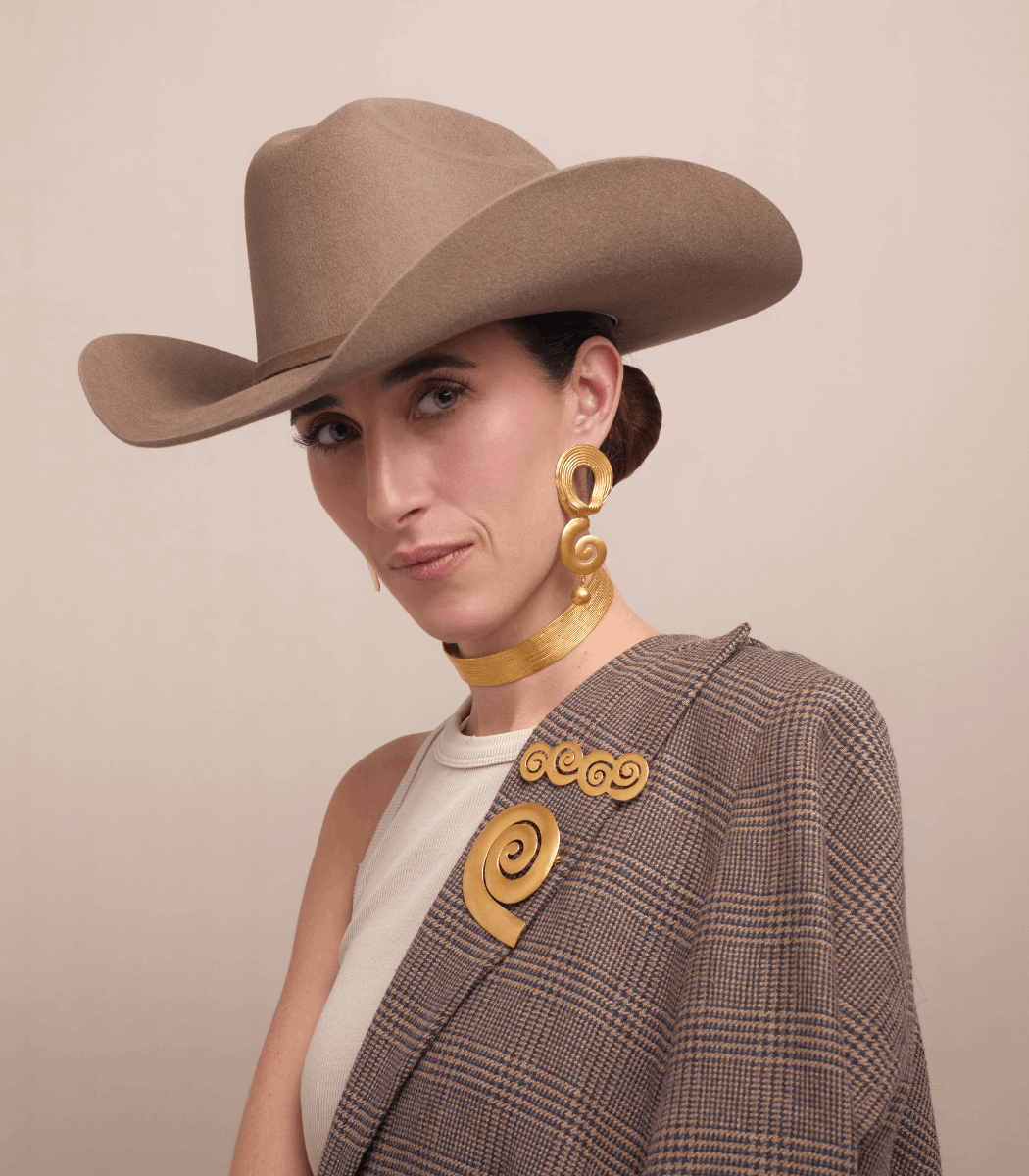 Todas las piezas son de brass con baño en oro de 24kt, acabado en oro mate, hechas a mano en Colombia.