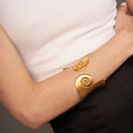 El Mullu Cuff se inspira en la cultura ZENU, evocando su riqueza simbólica a través de formas trabajadas a mano y detalles que conectan tradición y contemporaneidad.