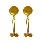 Estos pendientes, inspirados en la cultura ZENU, muestran la elegancia del diseño precolombino con una interpretación moderna en los elementos de espiral, que simbolizan la continuidad y el ciclo de la vida.