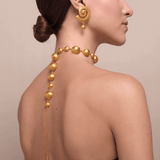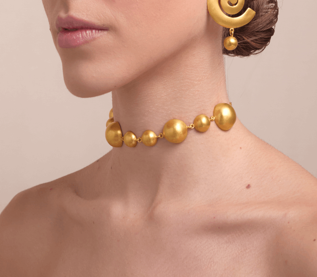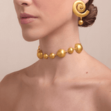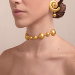 Este choker, inspirado en la cultura CALIMA, presenta esferas de diferentes tamaños que capturan la atención con su delicado diseño. Es una pieza que une la tradición cultural con la modernidad, brindando un toque único y sofisticado a cualquier conjunto.