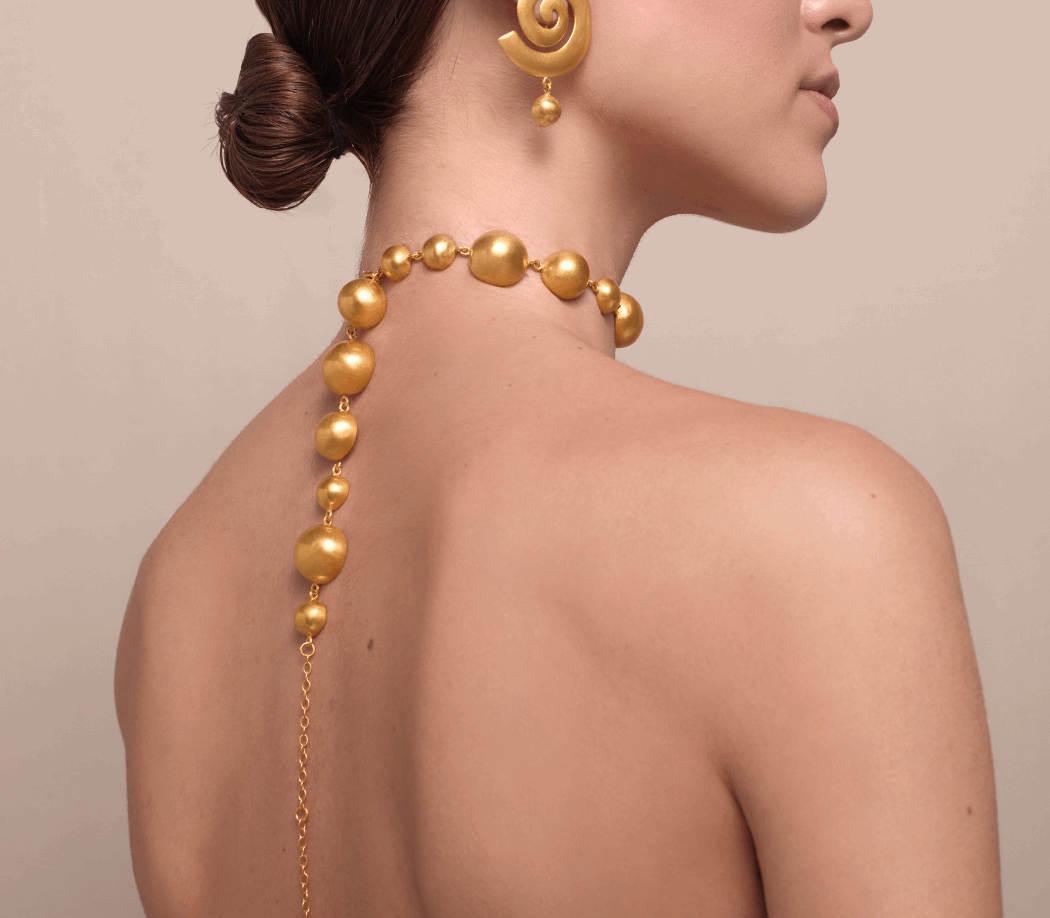 Todas las piezas son de brass con baño en oro de 24kt, acabado en oro mate, hechas a mano en Colombia.