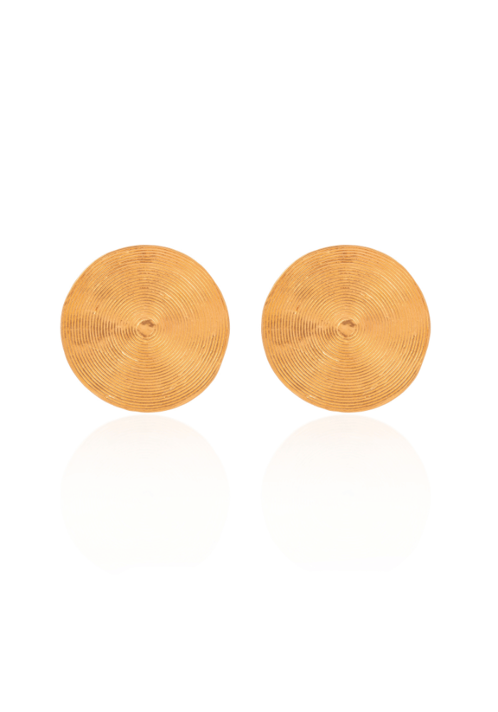 Estos aretes están inspirados en la figura del sol, símbolo de luz, energía y vitalidad. Su diseño radiante evoca la fuerza de este astro, que ha sido central en diversas culturas como fuente de vida y poder. La forma amplia y brillante refleja la influencia solar en la naturaleza y el arte.