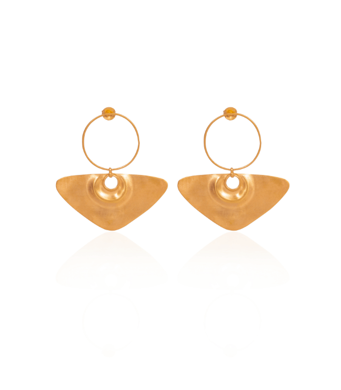 Todas las piezas son de brass con baño en oro de 24kt, acabado en oro mate, hechas a mano en Colombia.