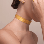 Este choker de diseño limpio y contemporáneo es una interpretación moderna de las formas orgánicas inspiradas en los ZENU. La pieza combina elegancia y simplicidad en su estilo.